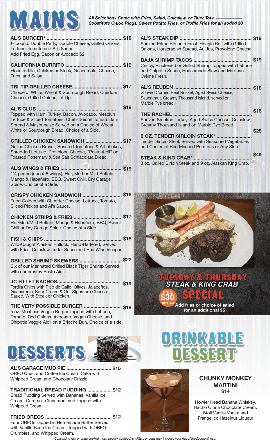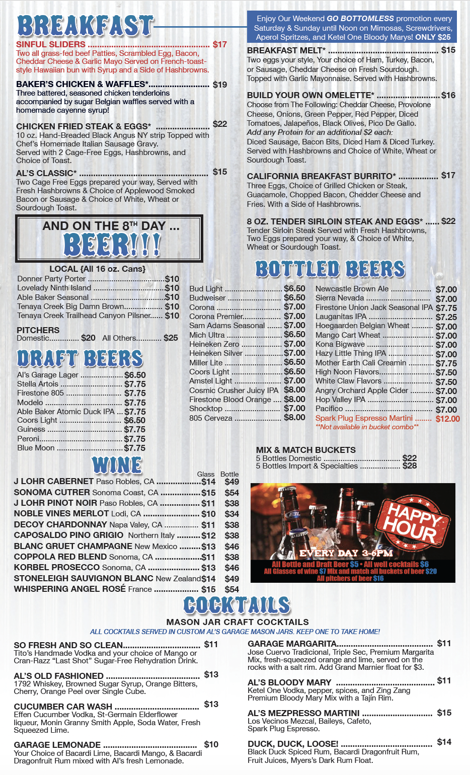 AL’S GARAGE – YOUR NEIGHBORHOOD RESTAURANT